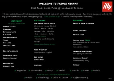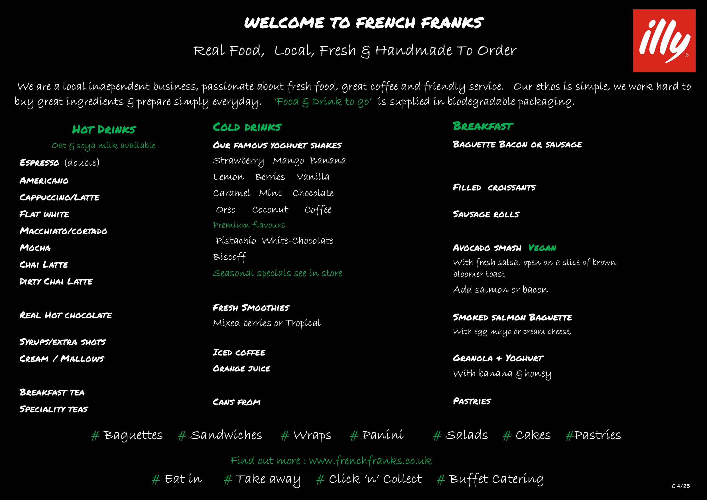 Little French Franks is tucked away in the Fountain Yard alongside the Red Jet terminal. We cater for crew lunches and open early for the major local events, serving great coffee and hot breakfast baguettes. Please check out our Facebook page ahead of major events for updated information.