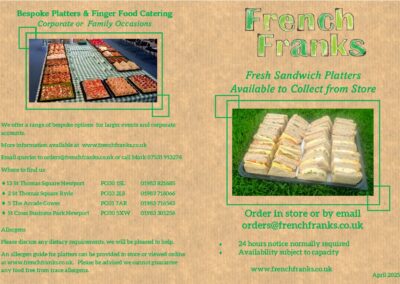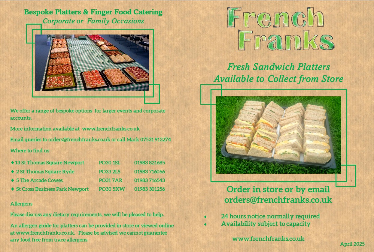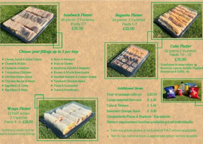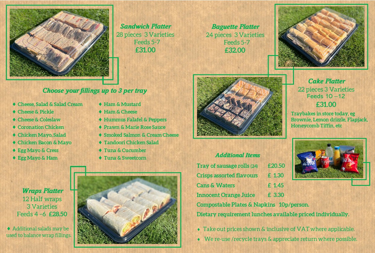 Prepared using the same fresh ingredients we supply sandwich & light buffets to a wide range of businesses and some private functions. Please contact for details for a quote and availability.